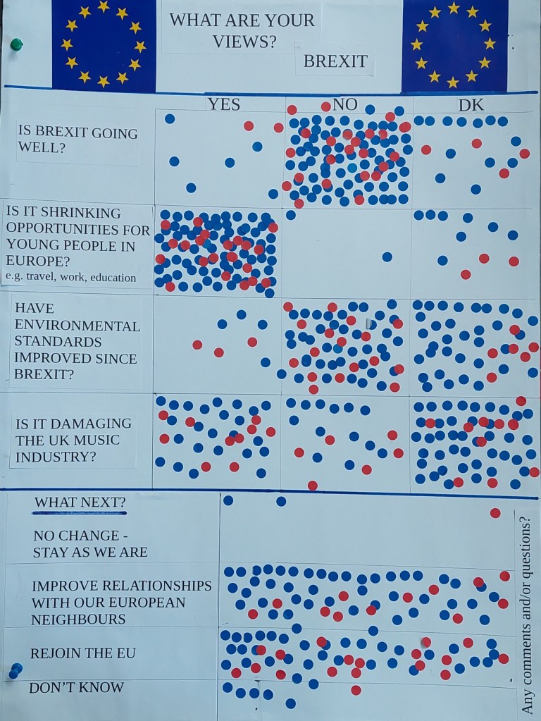 Cheltenham for Europe and Tewkesbury for Europe had a good day at the recent University of Gloucestershire Welcome Fayre at the Park Campus. We used our Brexitometer to gauge how students felt about Brexit. The majority of students who stopped to talk with us thought that Brexit was not going well, and that it had a negative impact on their opportunities to study, work and travel in Europe. Many were not sure about the environmental impact but were concerned about effluent on our beaches and in our waterways. Many students were not sure about the effect of Brexit on the music industry but when advised about the delays at borders, certification needed for equipment and some musical instruments, as well as the restrictions on touring and knock-on effects on the music support industries, were unpleasantly surprised. At the very least students wanted better relationships with our European neighbours and many wanted to rejoin the EU. We have sent a photo of the Brexitometer to our local MPs for their information!
