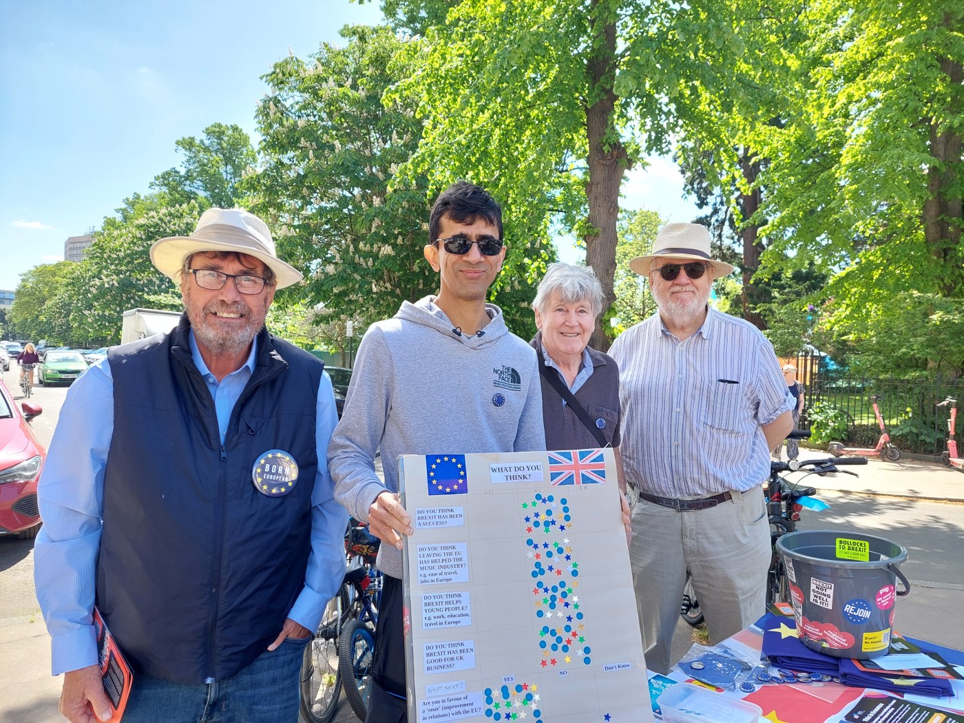 We recently held a successful street stall which coincided with the Cheltenham Jazz Festival. Lots of passers by stopped to speak with us including musicians, business people adversely affected by Brexit, students, European visitors who would warmly welcome us back and pro EU people angry and frustrated about the situation the UK now finds itself in. We met a few people who were pro Brexit but they declined to fill in the ‘opinionometer’.